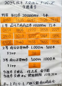 歳末大売出しで進呈しましたナンバーズ抽選券の